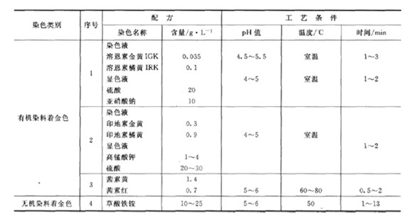 鈍化(三酸鈍化)→水洗→熱水洗→浸水溶性清漆[1:(5~20)]→水洗→晾干或烘干。 (3)仿金涂料工藝 仿金涂料工藝是在光亮白色鍍層上(鎳、銀)噴一層金黃色的透明漆,或在金色電泳涂料中進(jìn)行陰極電泳,從而獲得美觀的金色涂層。 仿金涂料,可采用水性氨基仿金烘漆或聚氨酯仿金漆,也可在氨基清漆、聚氨酯清漆、硝基清漆、醇酸清漆等清漆中加入少量黃色與紅色染料自行配制(用醇溶染料)。不同品種的漆料有不同加工工藝,成本與質(zhì)量也不同,依據(jù)產(chǎn)品要求選用。 對(duì)于非導(dǎo)體,如塑料、玻璃、陶瓷制品,可先進(jìn)行真空蒸鍍鋁或化學(xué)鍍等方式獲得金屬層,再涂裝處理。 (4)鋁合金氧化著色 鋁一般采用硫酸陽(yáng)極氧化后著金色(具體工藝見第7章),金色的染色液常用紅色與黃色調(diào)配,黃色多,紅色少, 鋁氧化著仿金色工藝規(guī)范